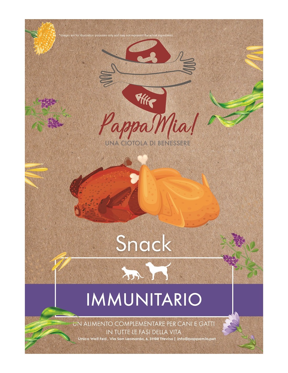 Questo mangime complementare può essere somministrato responsabilmente a cani e gatti in qualsiasi momento come regalo o come premio.